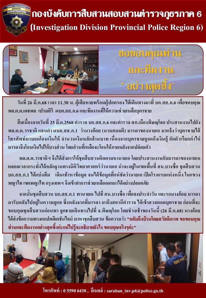 ขอขอบคุณท่านทีมงาน “ อย่างสุดซึ้ง” 27/03/2568 โดย idp6admAdmin / ข่าวประชาสัมพันธ์,ข่าวฝากประชาสัมพันธ์,ข่าวภารกิจผู้บังคับบัญชา FacebookFacebookXXLINELine