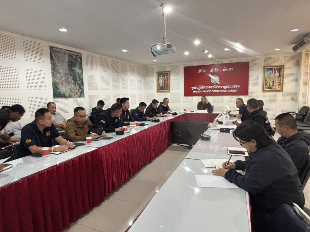 ประชุมติดตามความคืบหน้ากรณีคนร้ายชิงทรัพย์ร้านทองภายในห้างสรรพสินค้าโลตัสสาขาแม่สอด พร้อมมอบข้อสั่งการเพิ่มเติม เพื่อดำเนินการติดตามหาตัวคนร้ายมาดำเนินคดีตามกฎหมายต่อไป