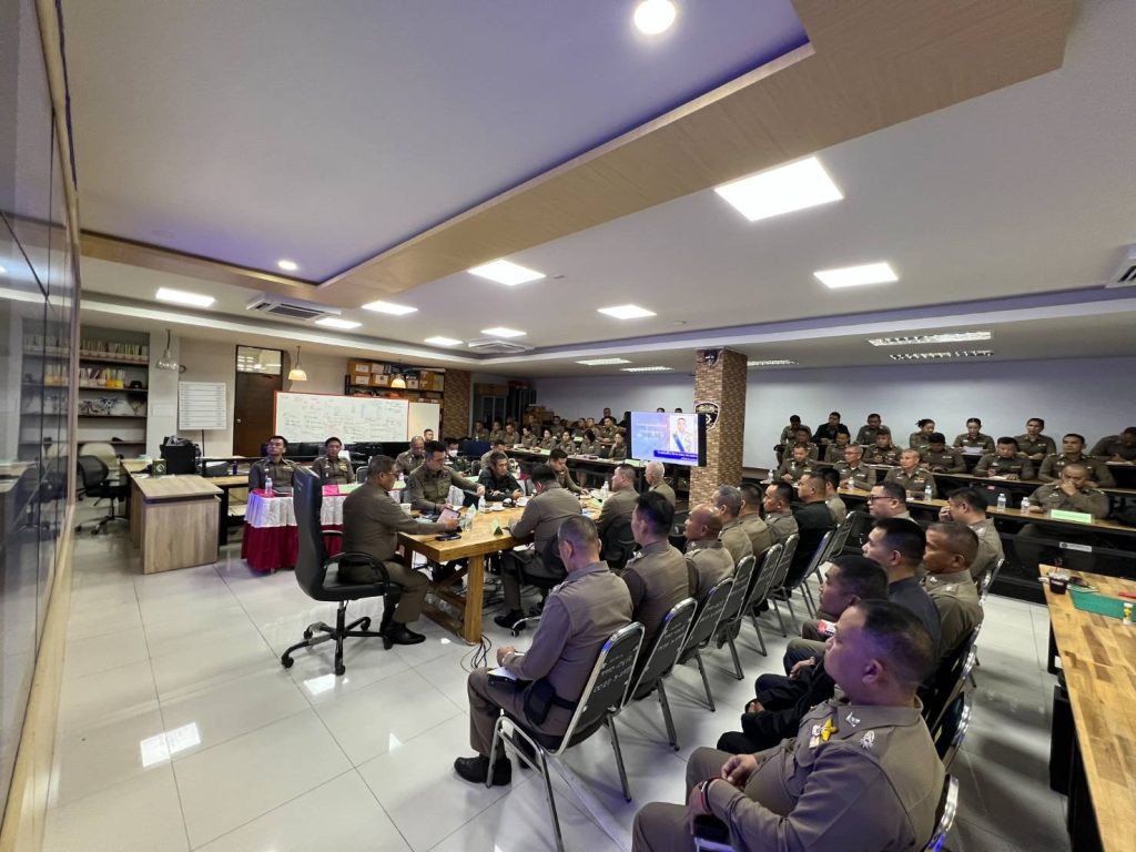 และข้าราชการตำราวจระดับ สว.ขึ้นไป เข้าร่วมประชุมรับมอบนโยบาย ณ ห้องชินราช ชั้น 1 อาคาร บก.สส.ภ.6